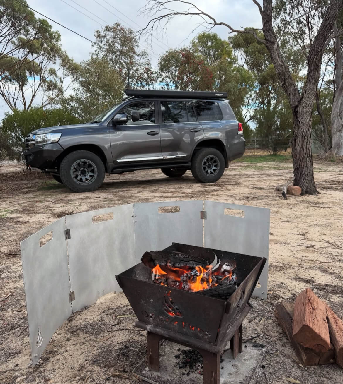 - Keep extra warm, as our windbreak will radiate the heat from the fire back to you